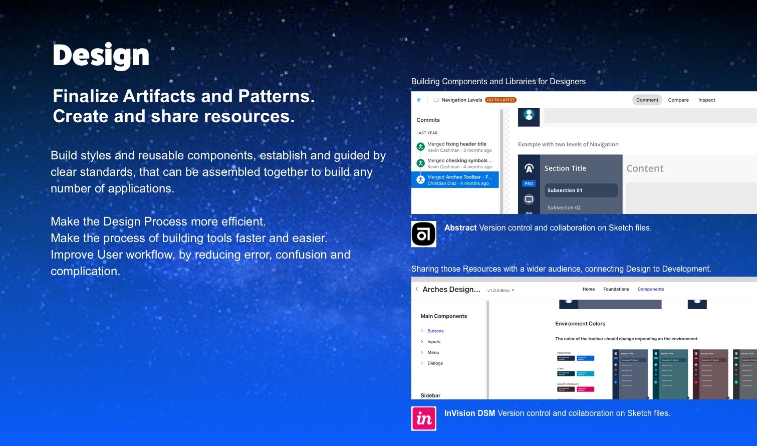 This is the design system and development framework for internal tools used by content creation and back-end teams. The primary focus is on efficiency, making complex workflows simple, and allowing developers to quickly build and deploy new tools with a consistent UI. Arches Design System helps streamlines processes like content publishing and managing artwork and videos, reducing pain points in daily workflows.